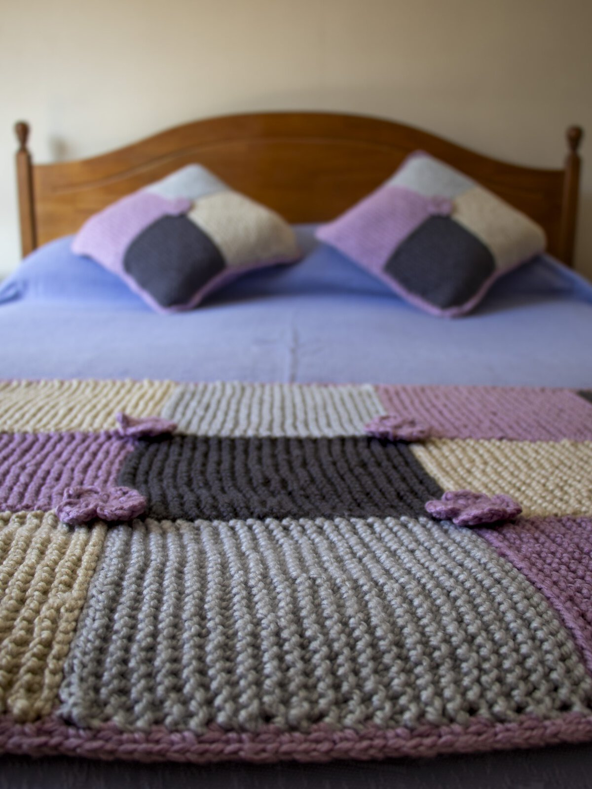 Tejida a mano, suave y acogedora. Su diseño floral en tonos gris y lila aporta calidez y elegancia a tu cama o sofá. Ideal para dar un toque delicado y único a tus espacios.